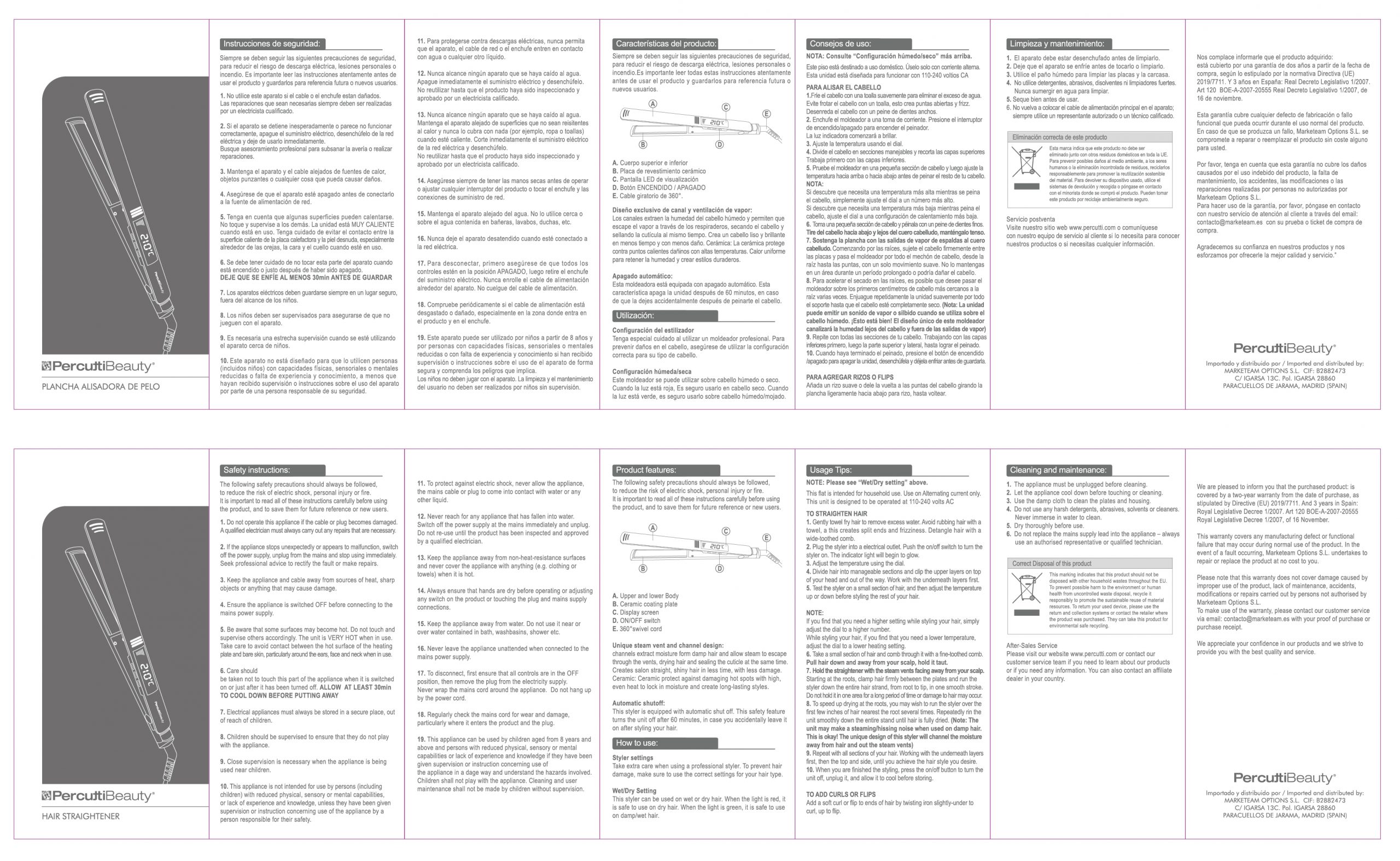 INSTRUCCIONES DE PRODUCTO