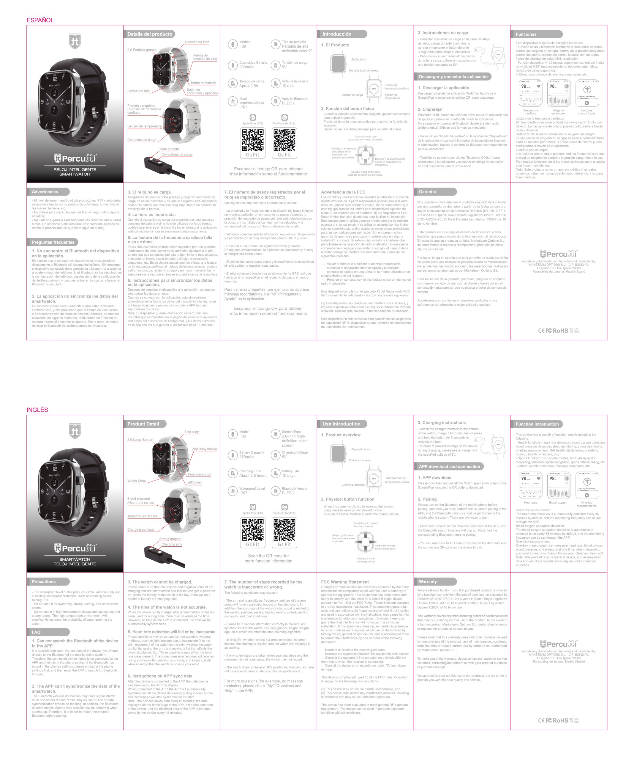 – El reloj no incluye función de posicionamiento GPS, así que habrá un error específico en el recuento de pasos en modo deportes.