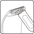 Este cabezal es adecuado para recortar cabellos largos y gruesos, como axilas, línea del bikini, patillas, etc. Ajuste el recortador de pelo largo en un ángulo adecuado, coloque la cuchilla de la recortadora contra el vello que desea recortar. Deslice la recortadora lentamente en contra de la dirección del crecimiento del vello (Imagen 5).