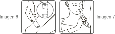 NOTA: Si utiliza el aparato en zonas con pliegues cutáneos, utilice su mano para estirarla. Si utiliza el aparato en las axilas, levante el brazo y colóquelo detrás de la cabeza hasta que la zona se estire (Imagen 7).